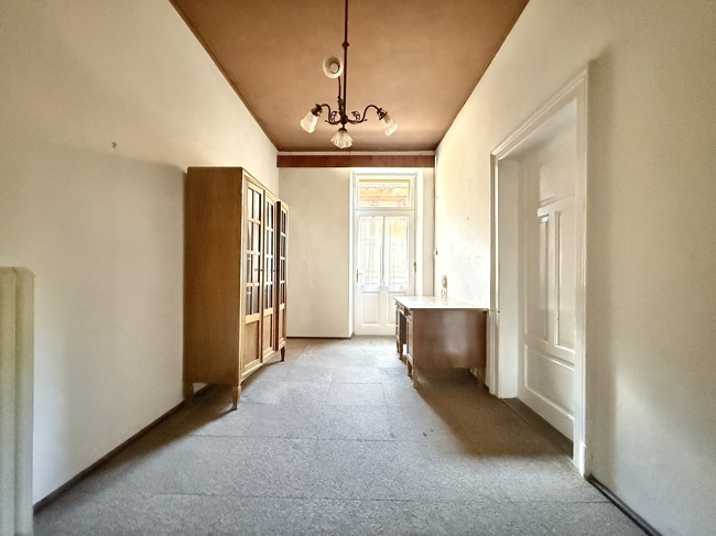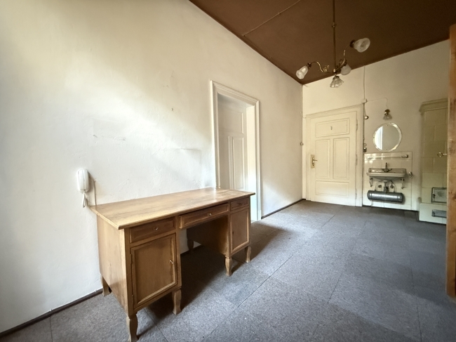 Die Wohnung befindet sich im Hochparterre und verfügt über einen herrschaftlichen Eingang. Über 110 m² erstreckt sich eine großzügige Jugendstilwohnung mit einer Deckenhöhe von 3,1 m.